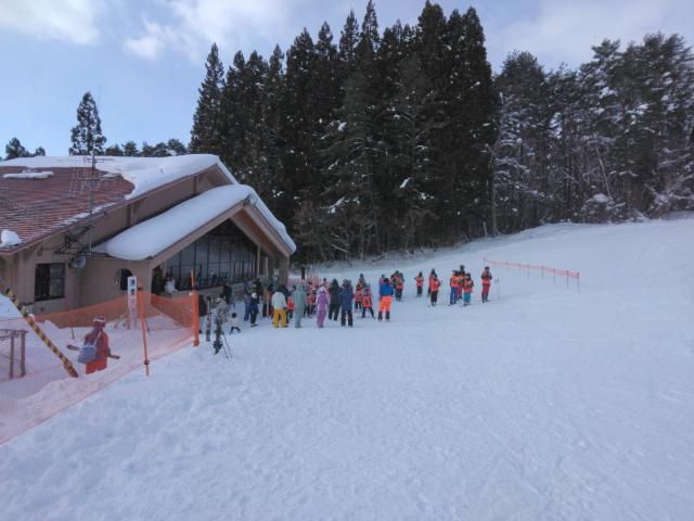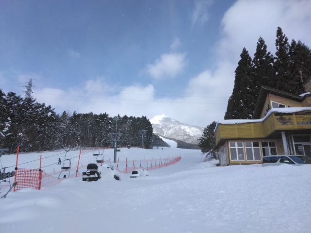 スキー場リフト乗り場まで移動すると、スキー客も楽しんでいました。