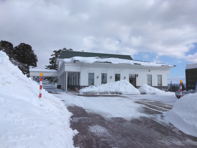 公園内を海望館、弐番館、みどり館、安渡館を歩きラリーバッジを頂きました。コースは除雪されていて歩き易くなっていました。