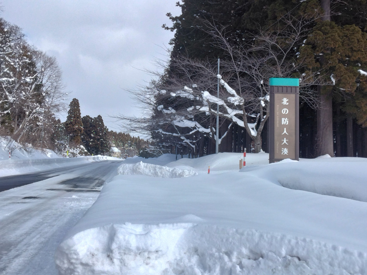 むつ市水源池公園は眼下に大湊・芦崎湾が広がり背後には名峰釜臥山が構える風光明媚な場所にあります。この地に明治時代から海軍施設が整備され、その後公園として開放され市民の憩いの場となっています。今回は、最も積雪が深い時季の公園を、雪や氷の世界を楽しみながらゆっくりと歩いてきました。