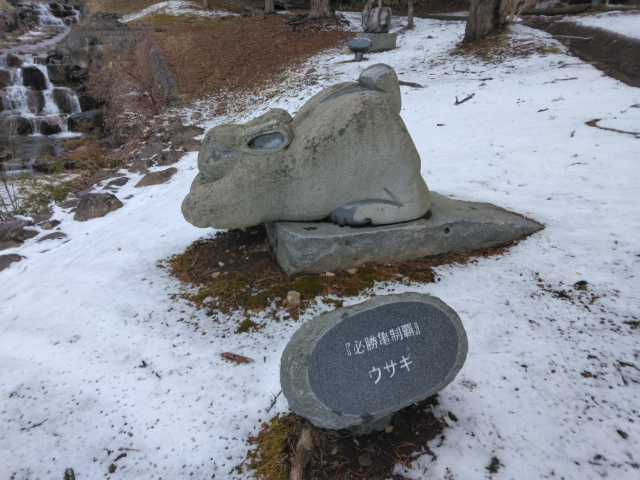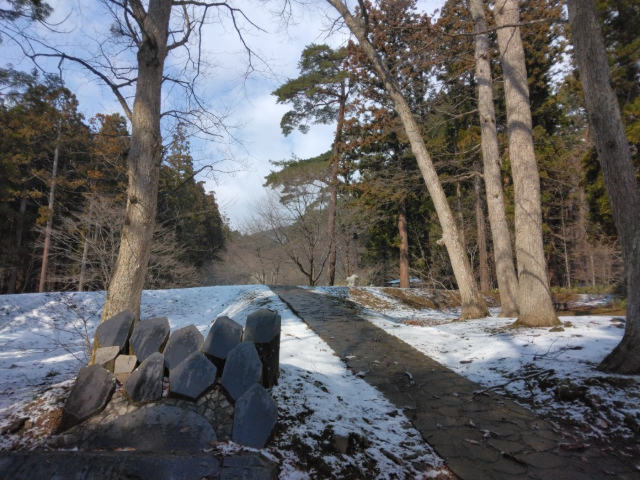 公園内は陽射しもあり、前夜に降った雪もほとんどなくなり春近しと感じさせる風景でした。安渡館、弐番館、みどり館を巡りラリーバッジを頂きました。